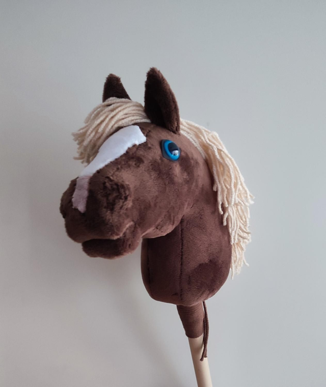 Hazelnut - maść brudnokasztanowata z jasną grzywą, strzałka i rybimi oczami, z ręcznie robionymi wodzami i kantarem ze skóry naturalnej. Rozmiar A4 (mały - small). Koń jest prosty i bardzo dobrze wypełniony, dzięki temu jest stabilny podczas jazdy. Wymiary: konik 26 cm, kijek 31 cm (całkowita długość 57 cm). Opracowany przez nas model daje wrażenie jazdy na prawdziwym koniu. Waga całkowita - do 450 g (sam konik 250 g).